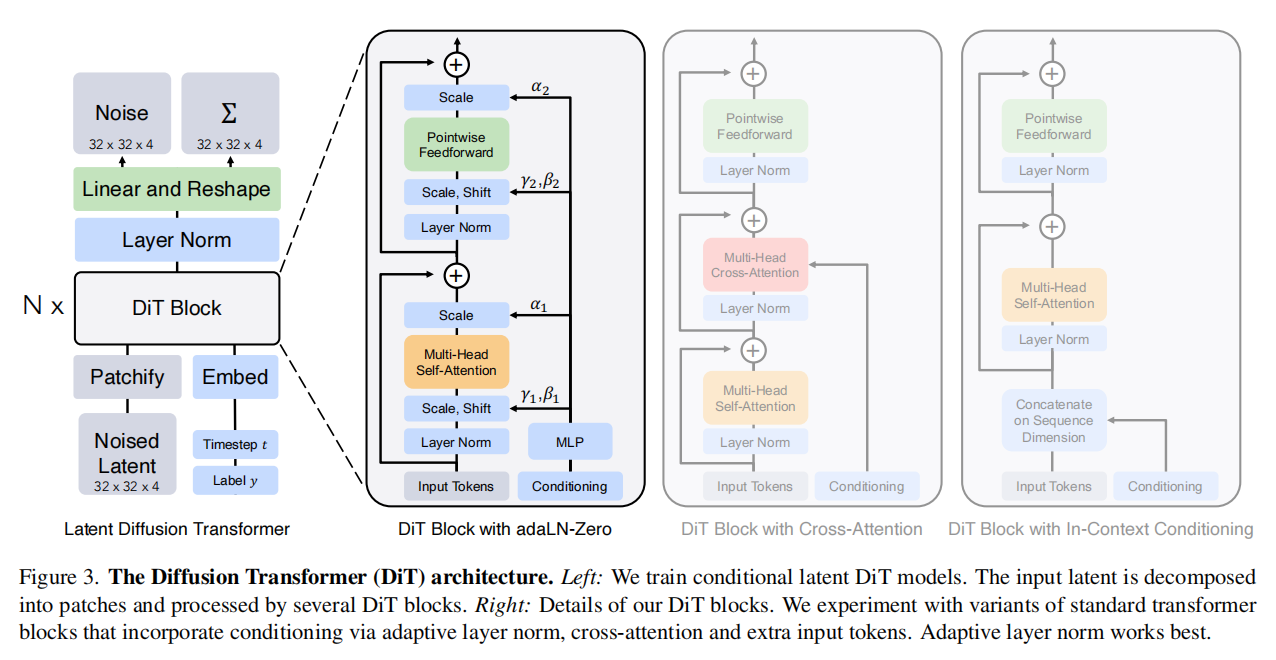 本文将上述四类 block 纳入 DiT 设计空间。并且实验结论表明: