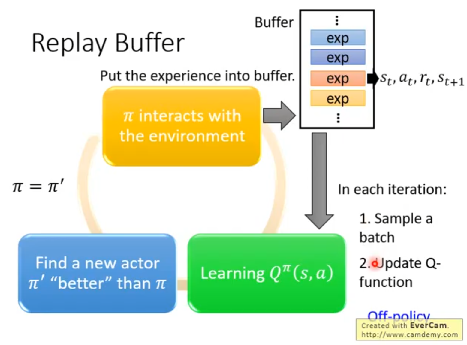 Off-plolicy: 当前训练的agent与最终和环境互动的agent不为同一个称为~